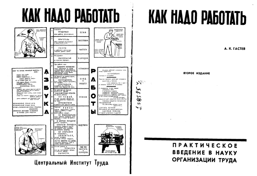 Визуальный референс Разворот книги «Как надо работать» А. Гастева