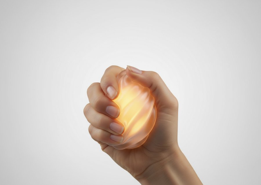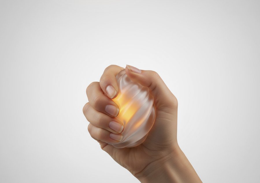 Антистресс-игрушка из мягкого силикона со встроенными светодиодами помогает снять напряжение: тактильные ощущения от сжатия сочетаются с плавными пульсациями света, синхронизированными с ритмом дыхания. После использования она помещается на беспроводную зарядную станцию, где продолжает мягко светиться, украшая пространство и восстанавливая заряд аккумулятора.