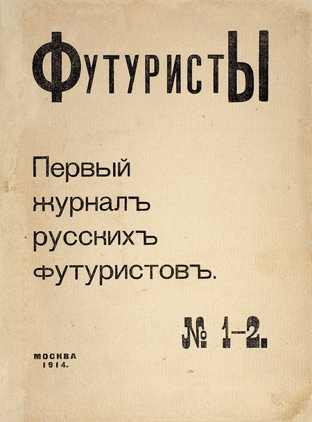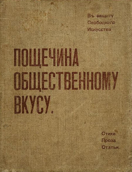 слева: Первый журнал русских футуристов / редактор Василий Каменский, издатель Давид Бурлюк. 1914. справа: «Пощёчина общественному вкусу», издательство Г. Л. Кузьмина и С. Д. Долинского. 1912.
