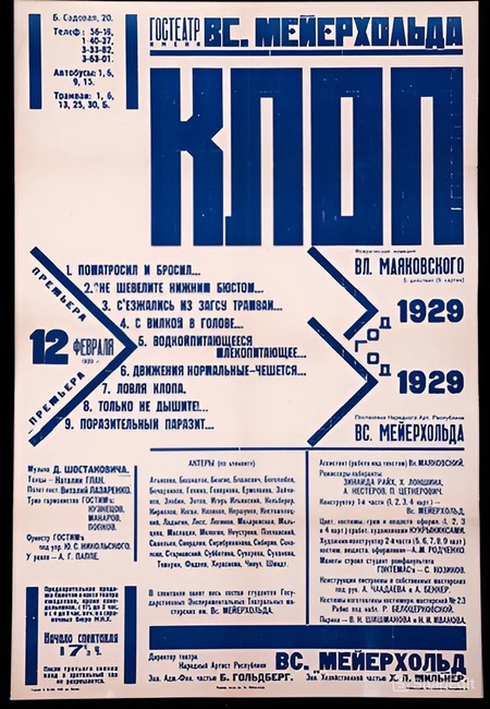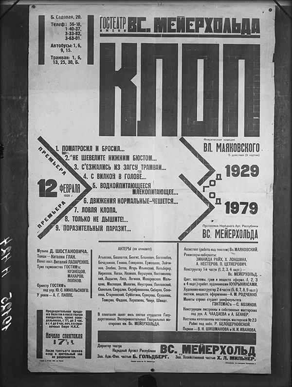 Афиша премьеры спектакля «Клоп» по пьесе В. В. Маяковского. 1929.