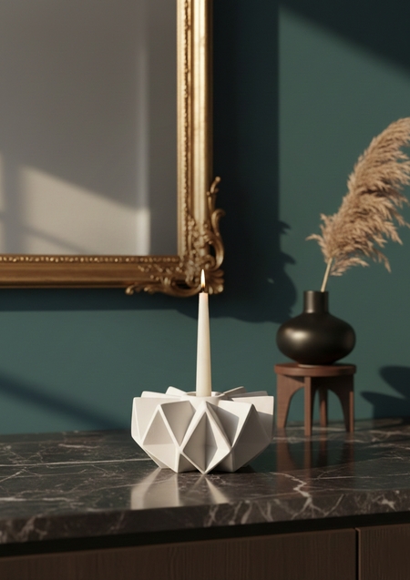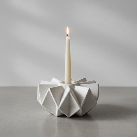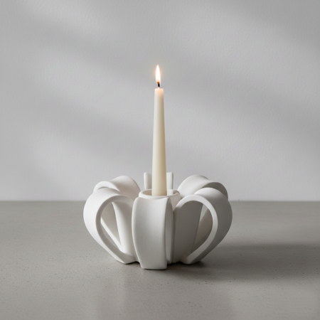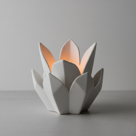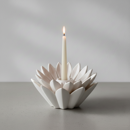 Для поиска визуальных решений каждого объекта серии были созданы концептуальные изображения с помощью Nano Banana. На этом этапе исследовались силуэты, степень абстракции цветка, баланс между органикой и геометрией, а также общий характер объектов как декоративных предметов.