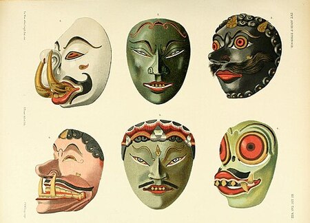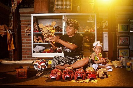 Балийские маски — это выразительные черты лица, которые изображают различных персонажей (короли, воины, боги, мудрецы, мифические персонажи). Для создания масок мастера используют маленькие ножи и тщательно вырезают каждую деталь, чтобы актёры могли точно передавать эмоции и рассказывать истории во время представления. В соответствии с характером персонажа подбираются определённые цвета, украшения и черты лица.