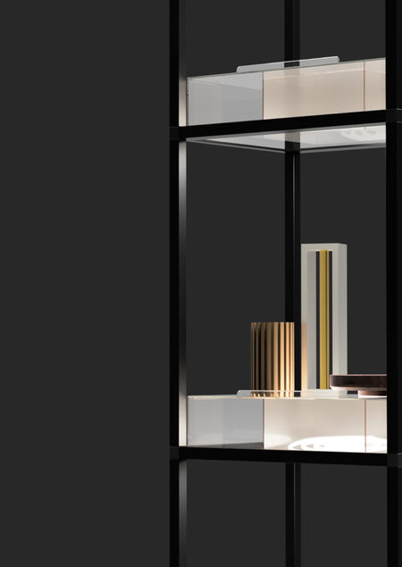 Бренд разработан специально для линейки продуктов открытого хранения со встроенной подсветкой, которая является главной особенностью каждого продукта в серии.