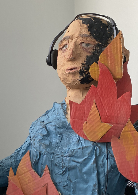 Первое, что приходит на ум, естественно, процесс горения/сгорания. Именно поэтому я решила работать с бумагой, в технике «папье-маше». Своим проектом я показываю, как человек реально сгорает на работе от переутомления.
