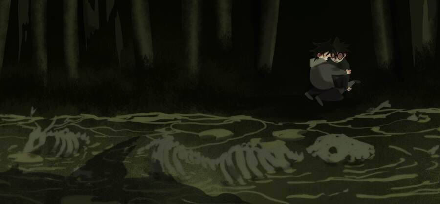 По раскадровке выше можно увидеть, что на протяжении всей книги повествование поддерживает определенная цветовая гамма. Финал завершается мрачным красным