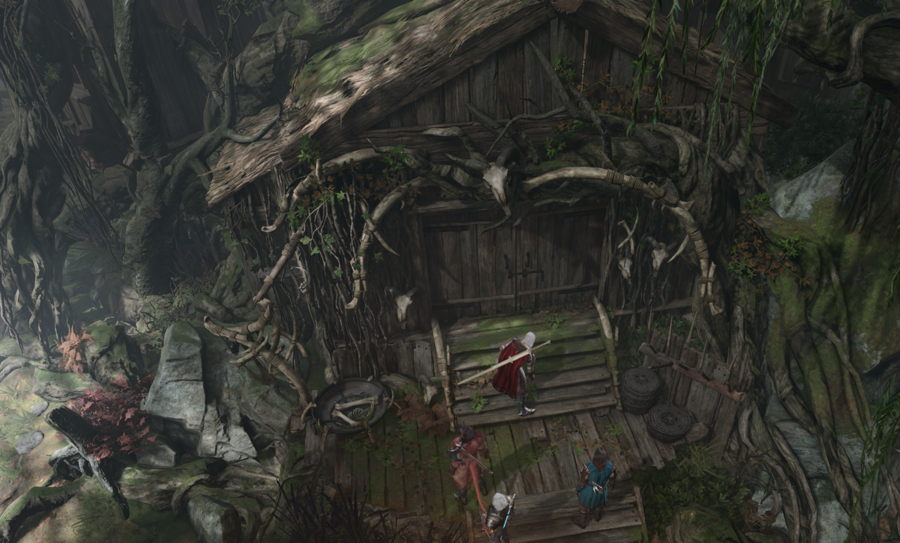 Дом тётушки Этель до и после снятия иллюзии. Baldur’s Gate 3. Larian Studios, 2023 г. Отлично отражается мотив границы между мирами.