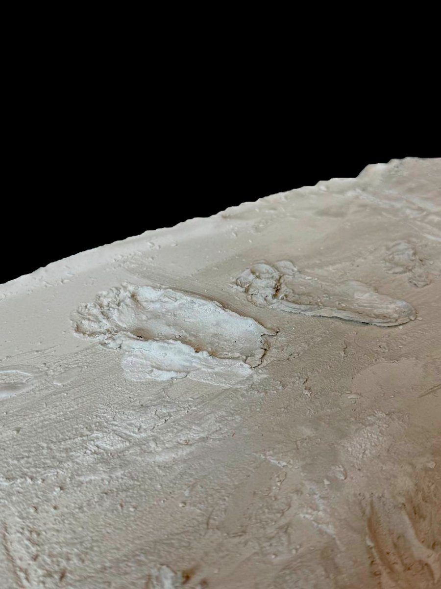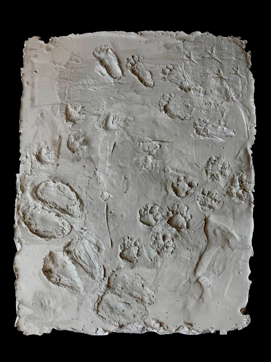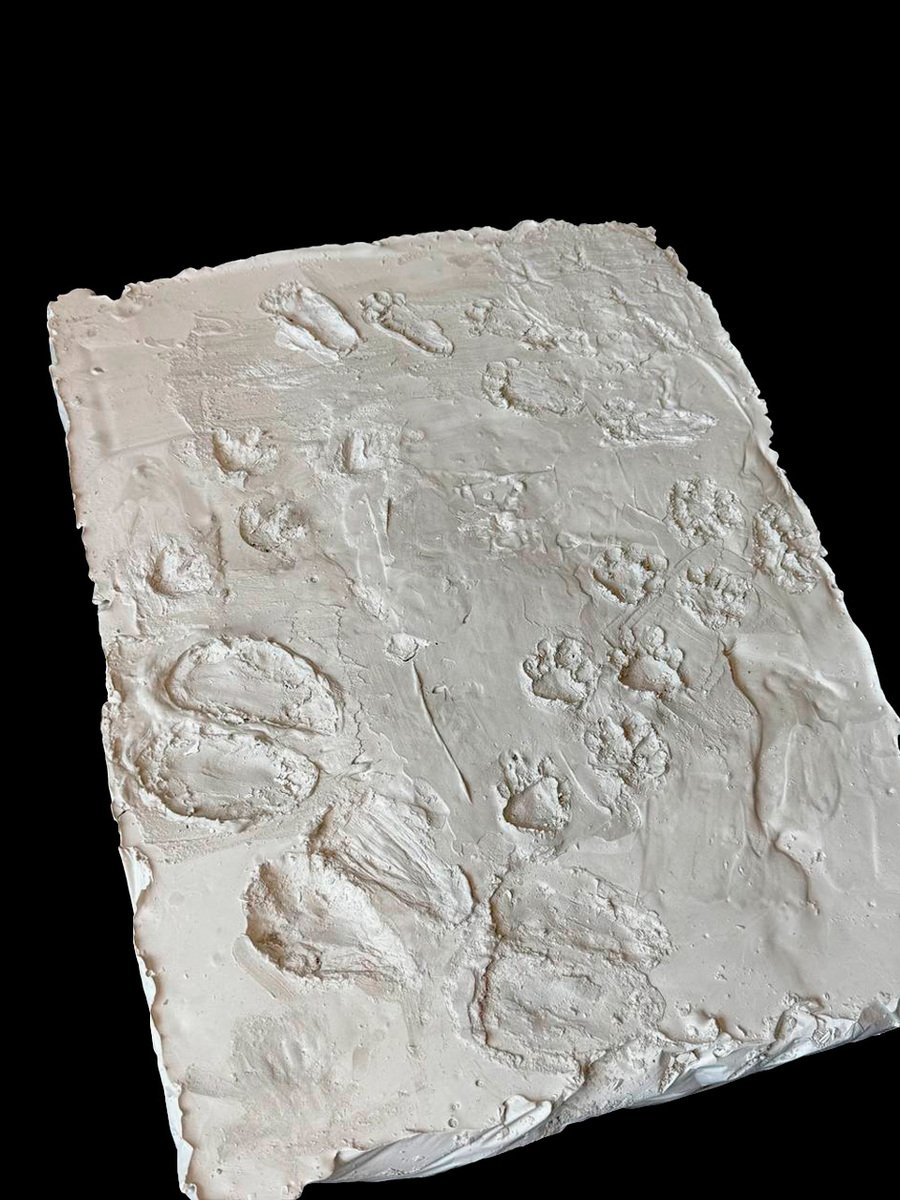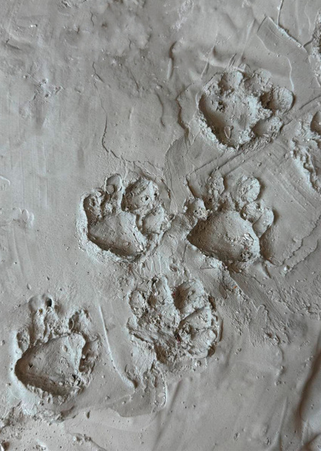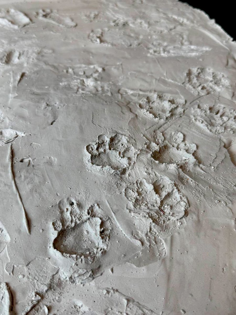 В нашем проекте изображены отпечатки следов различных животных, обитавших на Императорской ферме. Каменный блок символизирует дорогу, по которой они когда-то ступали, а следы — историю и память. Акцент сделан на естественность среды обитания, поэтому следы исполнены с легкой небрежностью.