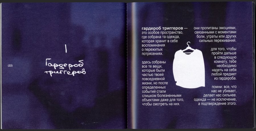 квест, разработанный индивидуально под каждого участника. зоны внутри помещения строятся на основе психотравм, негативно влияющих на жизнь клиента. * — проект является альтернативной формой терапии.