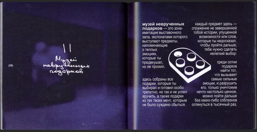 зона, оборудованная под выставочный зал экспонатов, чью роль выполняют самые разные подарки, эмоции от которых ты предвкушал, но не смог прожить.