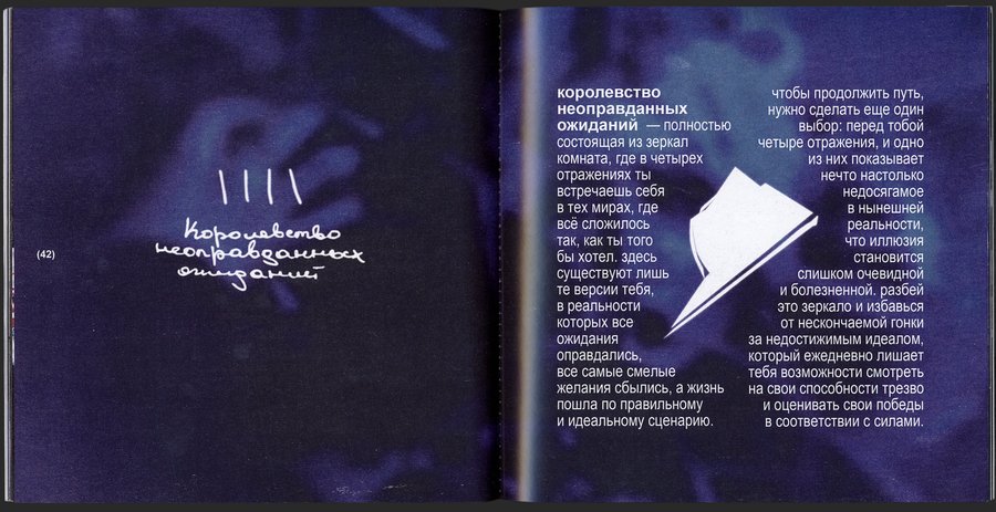 зеркальная комната из четырех отражений, в которых ты сможешь взглянуть на себя в той вселенной, где все твои мечты сбылись, а ожидания оправдались.