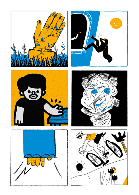 Вольный комикс в заданной фреймовой сетке на фразу «Правая рука, похожая на слоновью ногу».