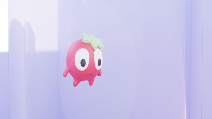 prompt: Minimalistic vector logo of the space cafe-snack «Pomidarin» in predominantly purple and additional red, orange and blue colors. The logo features a tomato mascot, a rocket and stars.