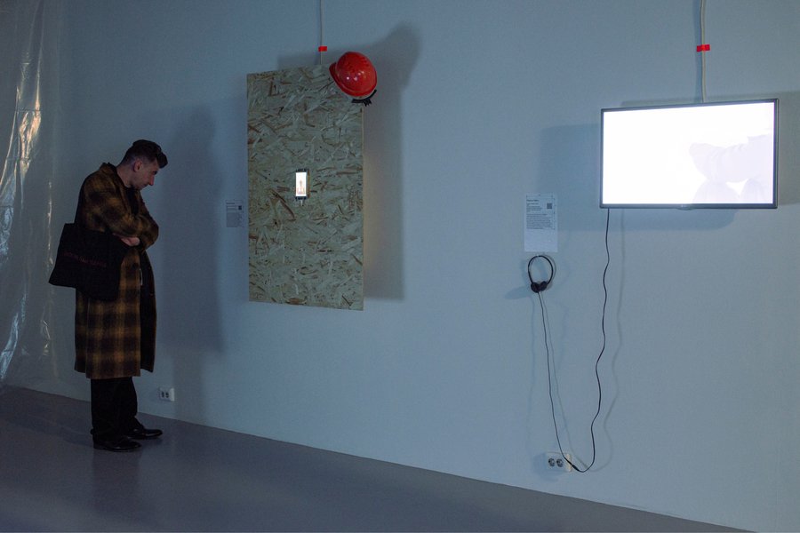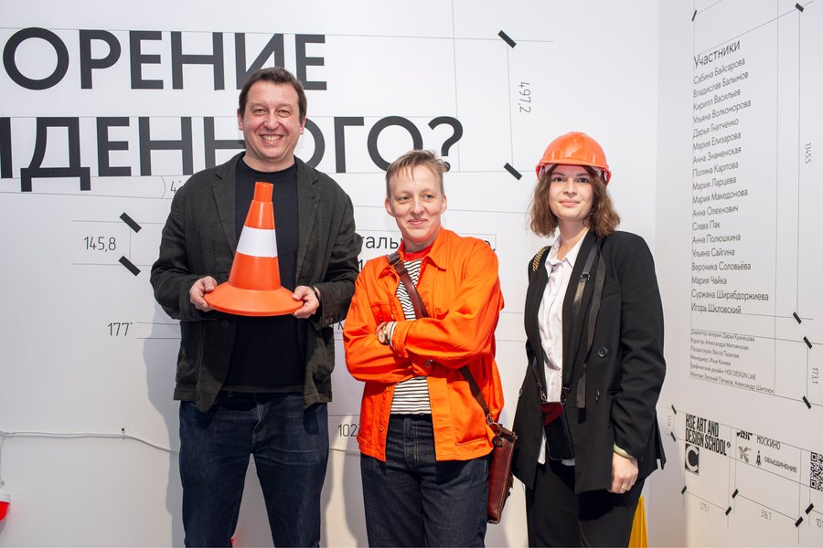 Техническое задание от галереи звучало так: это должно быть похоже на вечную стройку. Из этого появилось решение с «обмерами»: у каждого элемента есть свои размеры и они визуализированы, словно архитекторы оставили указания в планах.