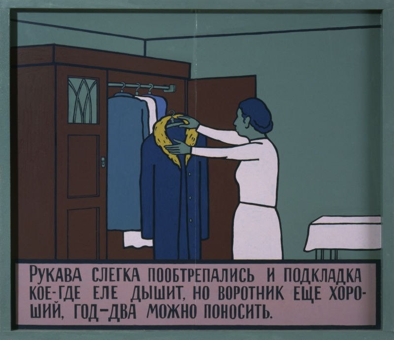 Коммунизм — общество победившего языка, общество логоцентризма. Советская действительность пропитана текстом: распоряжения, архивы, картотеки, доски объявлений, стенды, газеты, книги, плакаты, документации съездов ЦК КПСС и тд. Пожалуй, ни один медиум не был настолько вездесущим, каким был текст. Текст проникал в каждый аспект жизни человека, и со временем проник в искусство и полотно картины, а позже и вовсе стал главным героем.