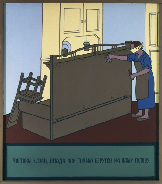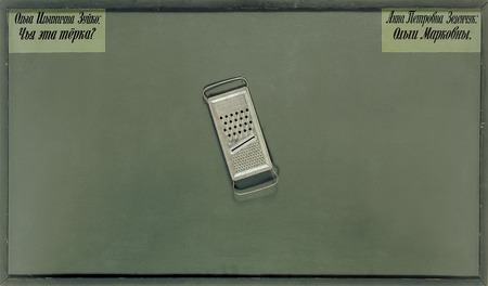 Илья Кабаков. «Анна Евгеньевна Королева: Чья эта муха?» 1987 / Илья Кабаков. «Ольга Ильинична Зуйко: Чья эта терка?» 1987