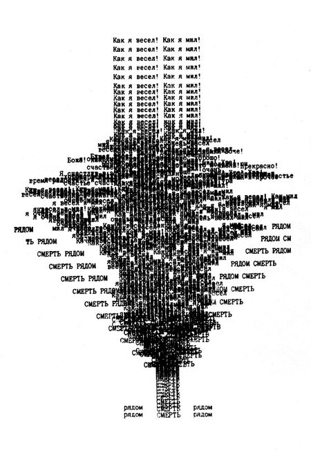 Говоря о поэзии в искусстве концептуалистов, стоит упомянуть имя Всеволода Некрасова. Некрасов — ярчайший представитель конкретной поэзии. В своих текстах поэт стремится сделать каждое слово весомым и осязаемым. Это достигается множеством средств, но одно из них — повторение реплик.