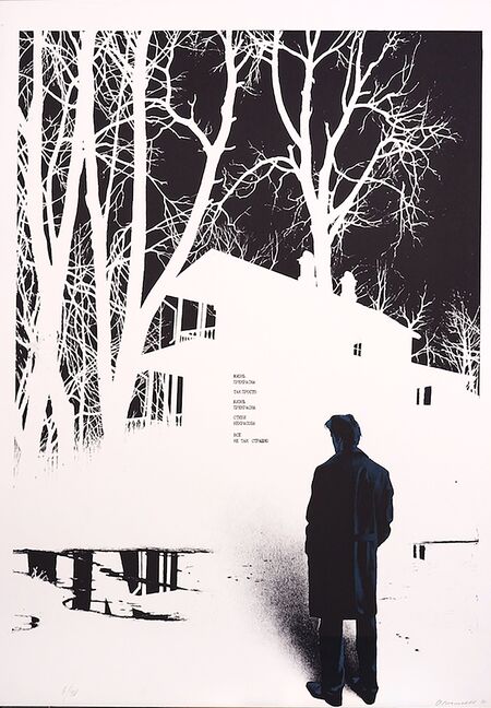 Олег Васильев так же вписывает поэзию Всеволода Некрасова в пейзаж, но пейзаж Васильева всегда более лиричный и романтический. Поэзия Некрасова в интерпретации Васильева оказывается не такой острой и кричащей, как у Эрика Булатова, а говорит тихим голосом, пропадая эхом в снегу и ветках деревьев.