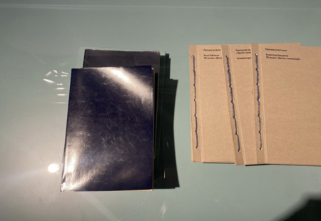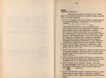 Тома документаций акций группы «Коллективные действия» в экспозиции «Открытое хранение. Пролог» музея «Гараж», 2024 / Группа «Коллективные действия», страница из 1 тома «Поездки за город», 1980