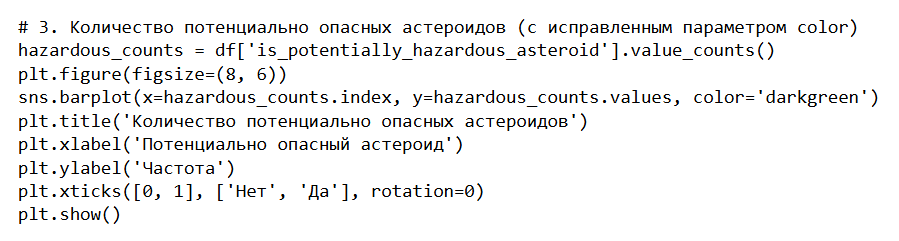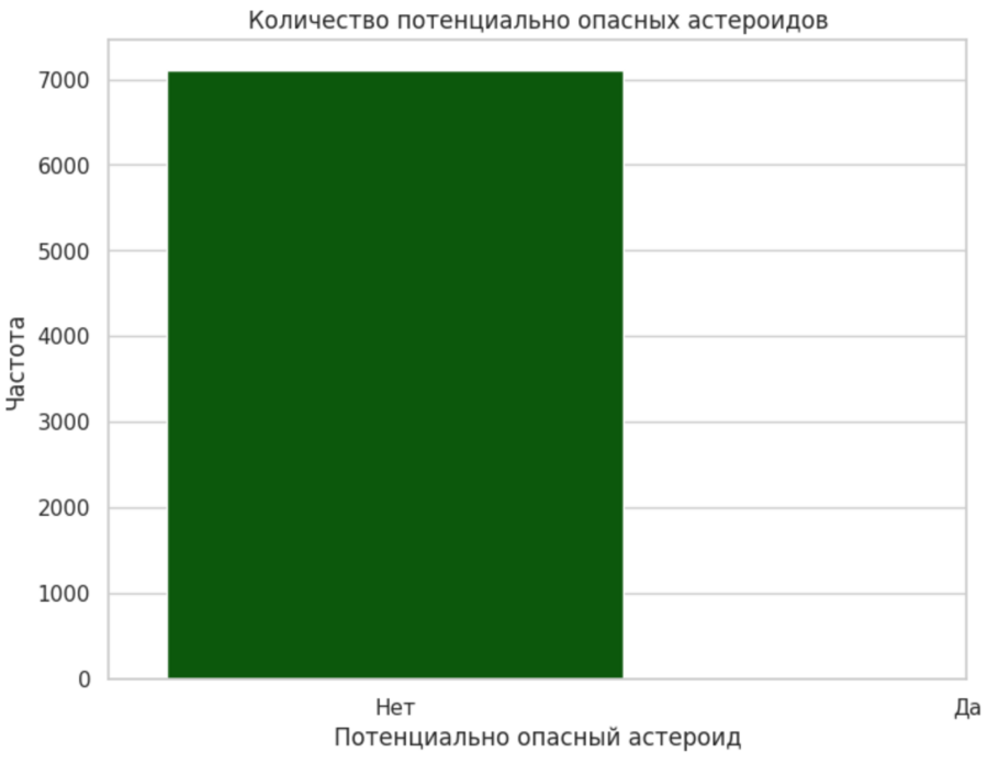 Если взглянуть на данные этой гистограммы, то можно с уверенностью сказать, что подавляющее большинство астероидов не является потенциально опасными, несмотря на их размеры и количества, вероятно из-за их преимущественно малых размеров.