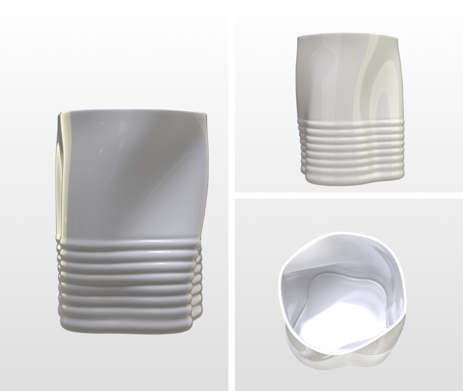 Объекты: 5 декоративных ваз, объединённых концепцией драпировки ткани в жёсткой форме. Назначение: интерьерные арт-объекты, допускается использование под сухоцветы/декоративные композиции; для живых цветов.