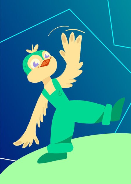В процессе разработки я опиралась на лаконичность СберКота, а также на некоторые обтекаемые пиктограммы Сбербанка, из силуэта которых вырос костюм для птички и форма крыльев. Чтобы отразить причастность к технологической среде, я добавила ей инновационный шлем и удобный для работы комбенизон
