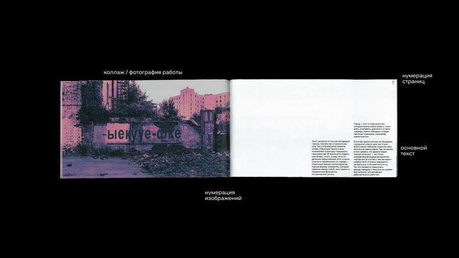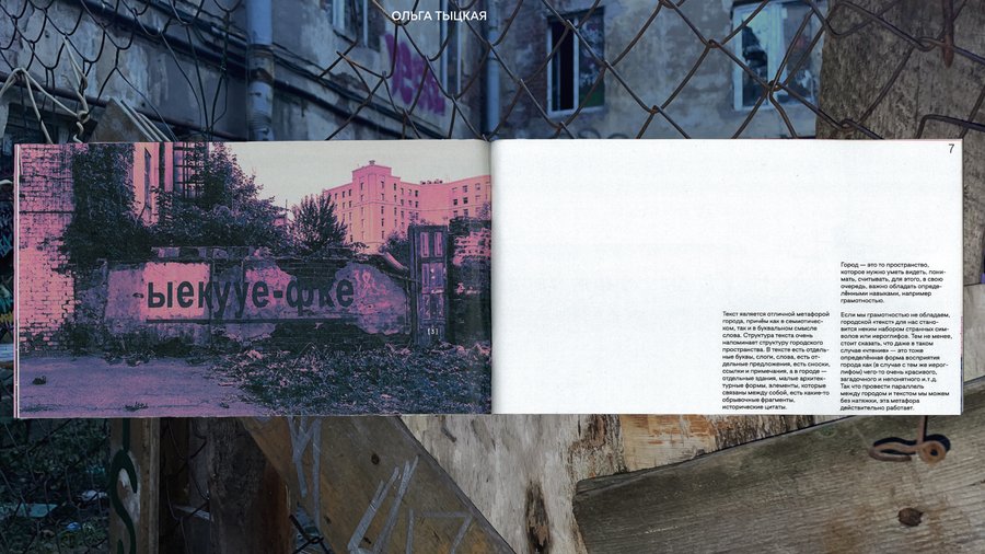 Данный зин представляет собой размышление о тексте в городском пространстве и его значении в жизни как отдельного человека, так и города. В нём рассматривается то, как текст становится частью городского пейзажа и привносит в него новые смыслы.
