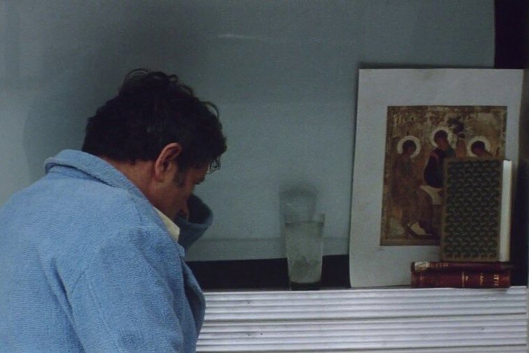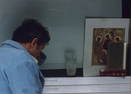 В первую очередь в каюте Криса Кельвина появляется икона «Троица» Андрея Рублёва. На фоне космической станции она напоминает об утраченной связи человека с его корнями и духовными истоками. «Троица» в фильме служит напоминанием о Боге и духовном начале, к которому герои утратили доступ в поисках научных знаний и ответов на личные вопросы.