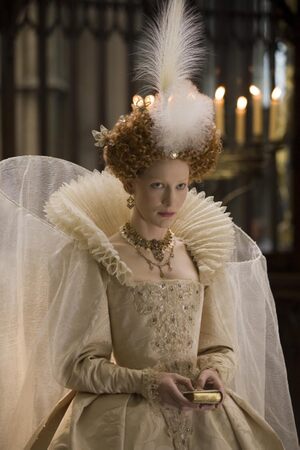 В фильме «Елизавета», снятом в 1998 году под руководством Шекхара Капура, можно заметить яркие визуальные отсылки к эпохе Тюдоров. Костюмы, созданные Александрой Бирн, не только отражают историческую достоверность, но и концептуально вдохновлены такими известными произведениями, как «Коронационный портрет Елизаветы», написанный в 1558 году, и «Портрет Дитчли» Маркуса Герартса Младшего, созданный в 1592 году.
