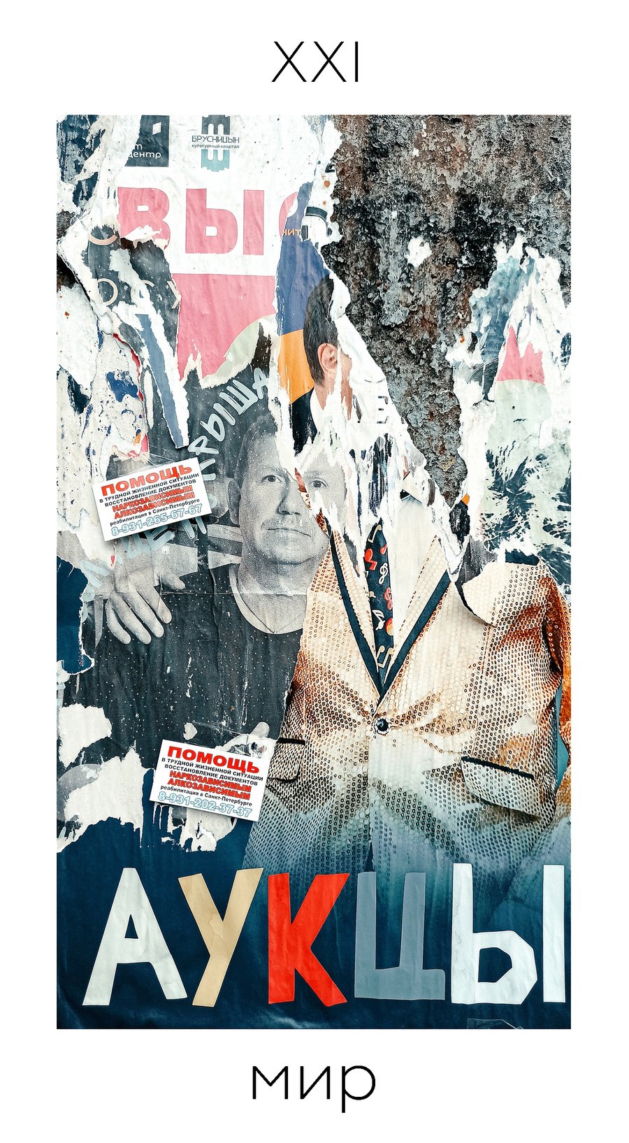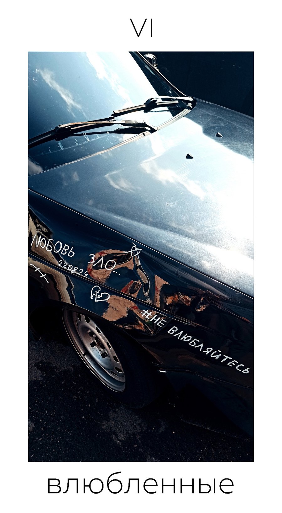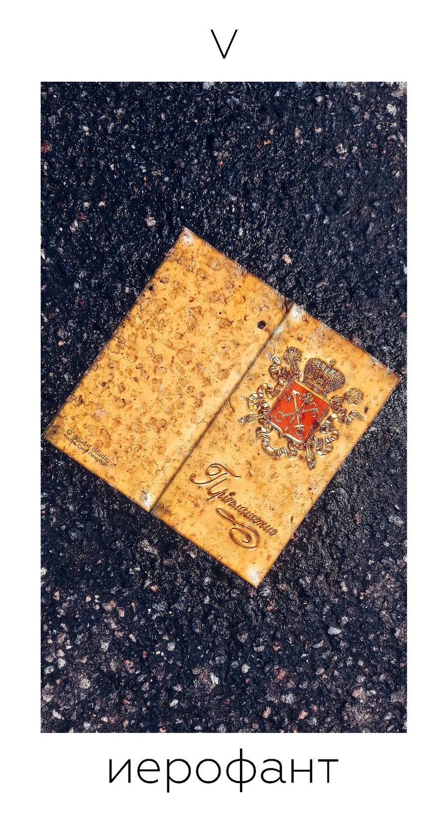 Данная колода состоит из 22 карт старших арканов, изображения на которых представляют собой найденные на улицах Петербурга ироничные интерпретации классических сюжетов. Предлагая в качестве классических архетипов образы временного и непостоянного в городе, я предлагаю осмыслить неподвижное, гармоничное и идеальное вечное в нестабильном, неопределенном и неоднозначном сегодняшнем.