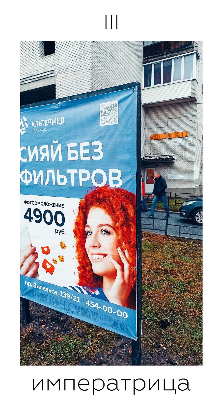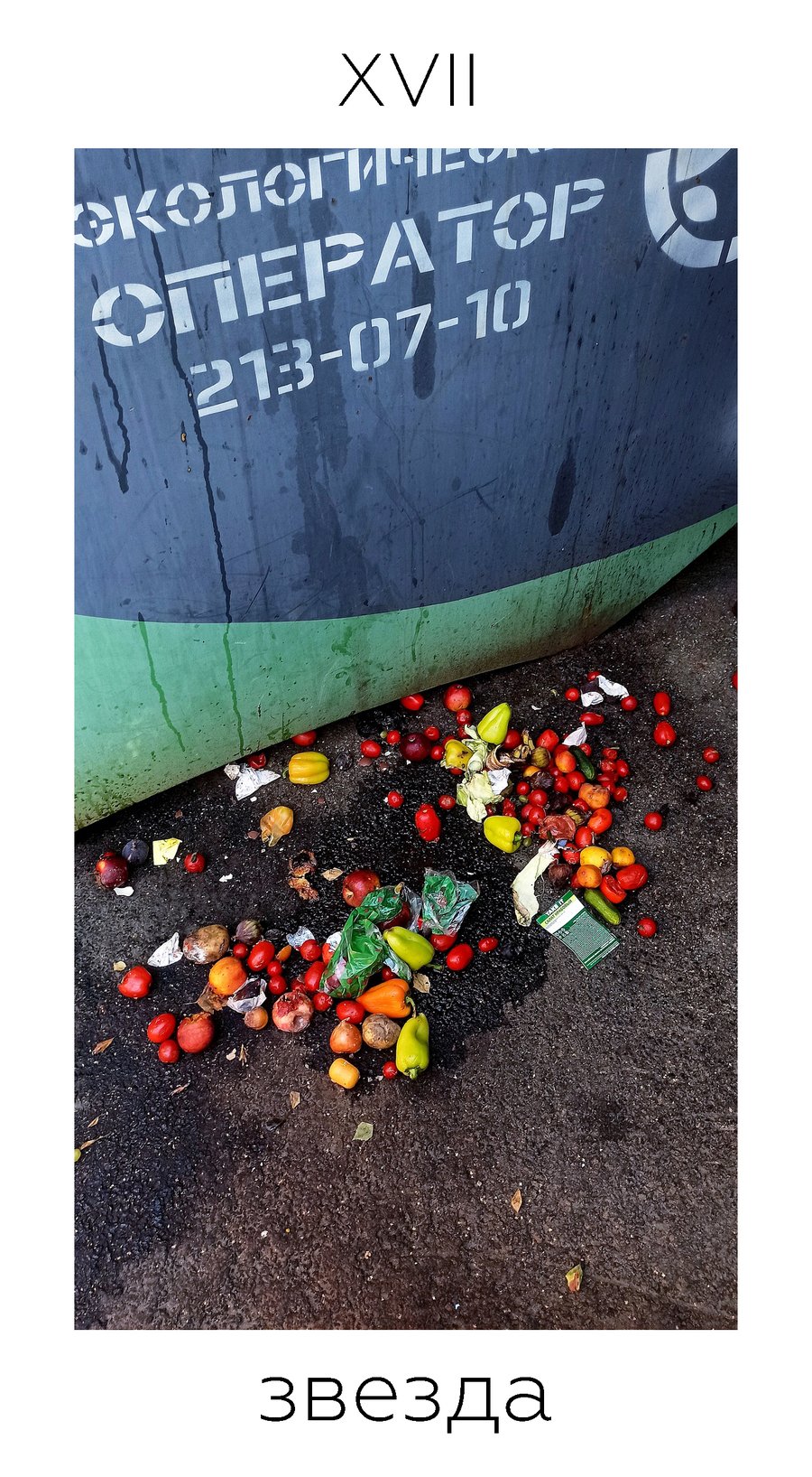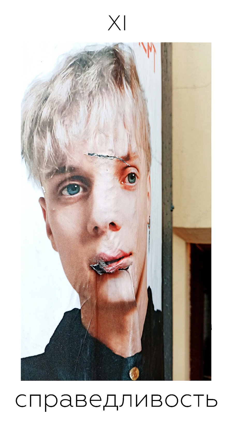 Данная колода состоит из 22 карт старших арканов, изображения на которых представляют собой найденные на улицах Петербурга ироничные интерпретации классических сюжетов. Предлагая в качестве классических архетипов образы временного и непостоянного в городе, я предлагаю осмыслить неподвижное, гармоничное и идеальное вечное в нестабильном, неопределенном и неоднозначном сегодняшнем.