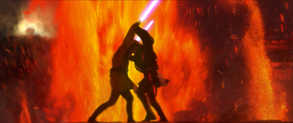 Эпизод финального боя Оби-Вана Кеноби и Энакина Скайуокера («Звёздные Войны. Эпизод III: Месть ситхов» (2005 г.)).