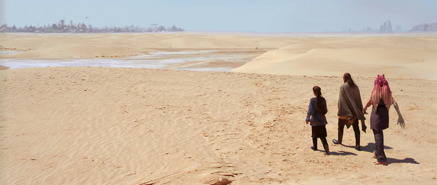 *Татуин — одна из планет вымышленной вселенной «Звёздных войн». Покрытая бесконечными песчаными пустынями, она является родной планетой для одного из главных героев — Энакина Скайукера (Дарта Вейдера), а также сопоставляется в данном визуальном исследовании с Синайской пустыней.