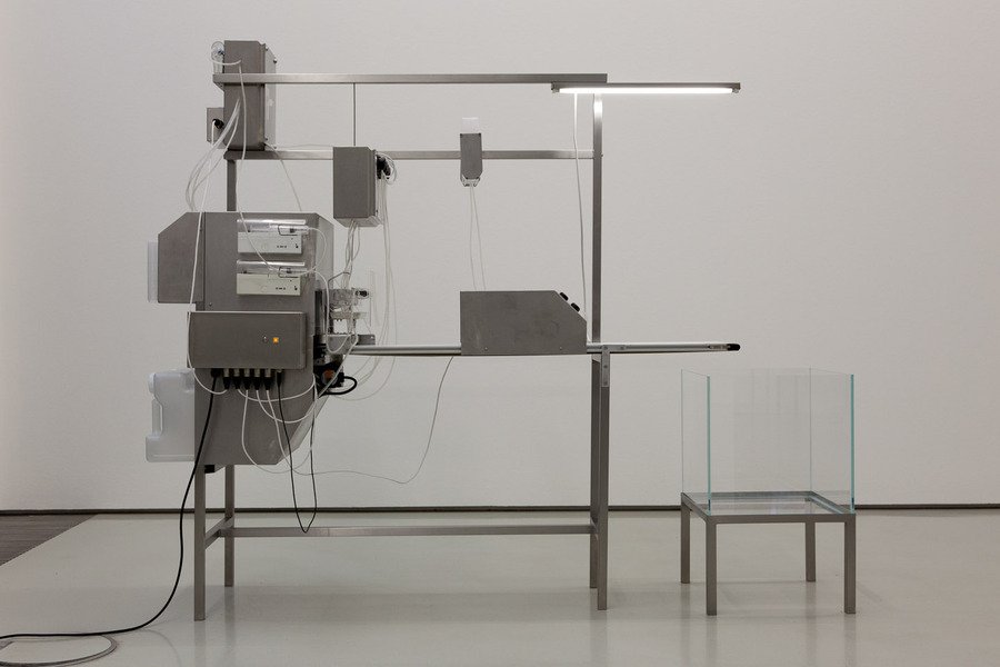 При этом система целиком — это «фабрика», идущая из него в пустые резервуары с водой конвейерная лента и сами аквариумы.
