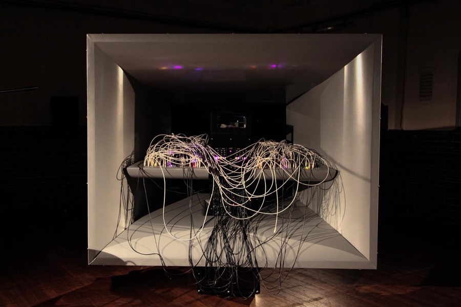 Музыкант и нейросеть в коллаборативном творческом процессе игры сливаются в единую кибернетическую сущность, производящую уникальную музыку.