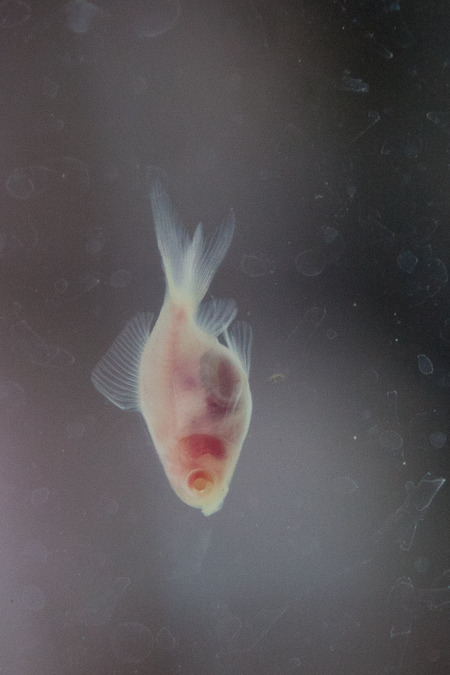 Рыбки в инсталляции лишаются буквально фундаментального признака живой материи: способности к воспроизводству. Они становятся предметом искусства, лишаясь какой-либо агентности.
