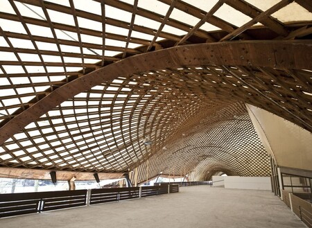 «Centre Pompidou-Metz» Сигэру Бана — это музейное здание 2007–2009 годов в Меце известное своей уникальной формой в виде большого сетчатого конуса из деревянных балок, похожих соты, создающих прочную и гибкую архитектурную конструкцию.