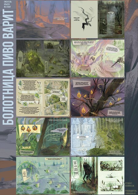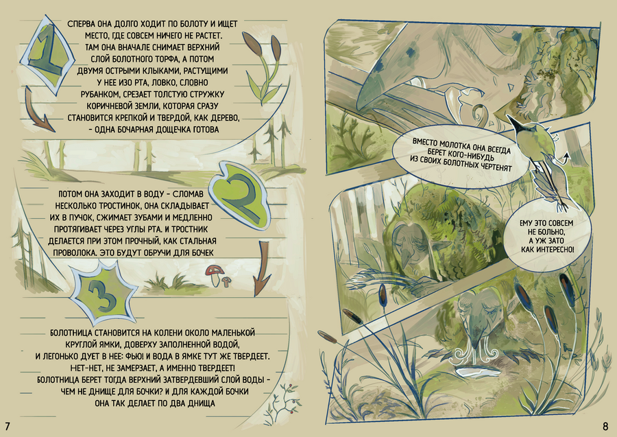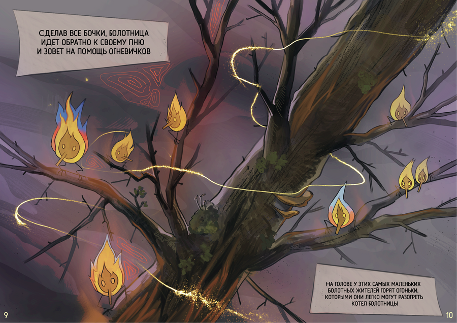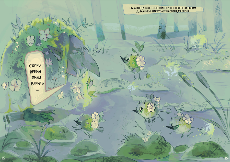 Сказка про туман на болоте, вызванный варевом Болотницы, и то, как она его готовит, про то, что происходит на болоте, когда люди не видят, кто на нём живёт и каким образом на самом деле наступает весна.