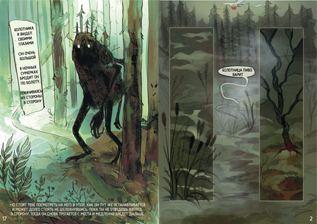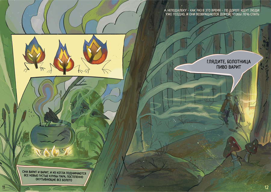 Туман мягко стелется по болоту и медленно поднимается вверх, клубами окутывая деревья и кустарники. И кажется, будто это и не туман вовсе, а пар от какого-то варева танцует в ночной болотной мгле.