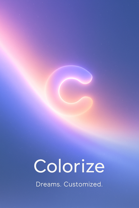 Промпт: minimal logo design for brand «Colorize», symbolizing dream, light and personalization, soft gradients, smooth glowing shapes forming abstract letter C, futuristic yet calm, white background, vector style, simple and elegant brand mark, balanced typography, high-end look