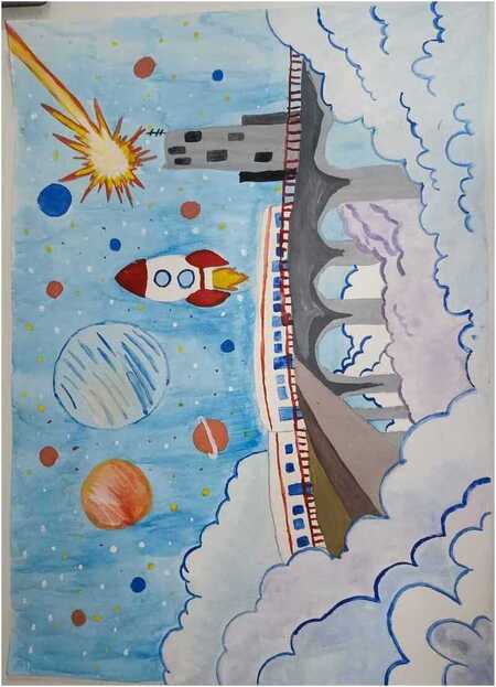 данный рисунок показывает, как связан космос и метро. Они оба великие, и важные в жизни людей. С праздником!