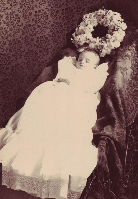 Возникает традиция посмертной фотографии, которая подразумевает изображение «мёртвого как живого». Попытка искусственно запечатлеть момент, обмануть реальность лишь усиливает трагичность и наши противоречивые впечатления.