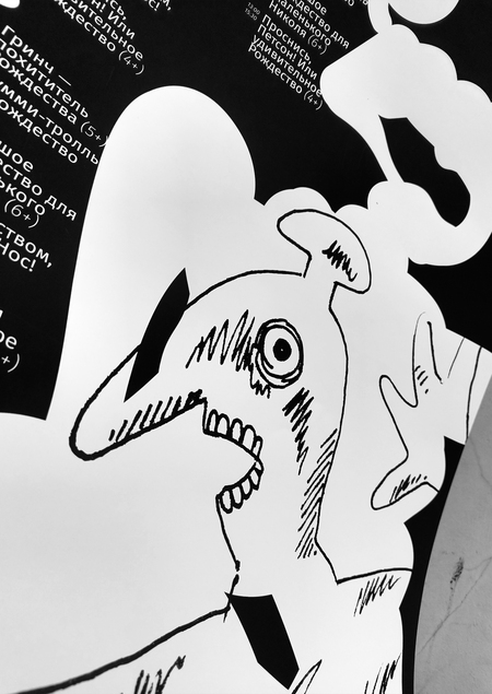 В основе образа — пятно, созданное из букв определённого слова. Оно может служить областью для иллюстрации или само изображать героя спектакля.