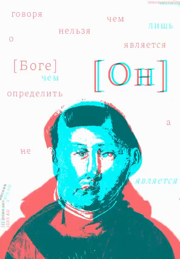 Метафизический лекторий «Innomateriality» предлагает своим посетителям на практике прикоснуться к нематериальности, выходящей за рамки сознания. Плакатные серии посвящены ряду мероприятий, которые могут перевернуть восприятие мира человеком, а также метафизическим явлениям и понятиям, которые пополняют багаж знаний посетителя о многогранности нашей Вселенной.