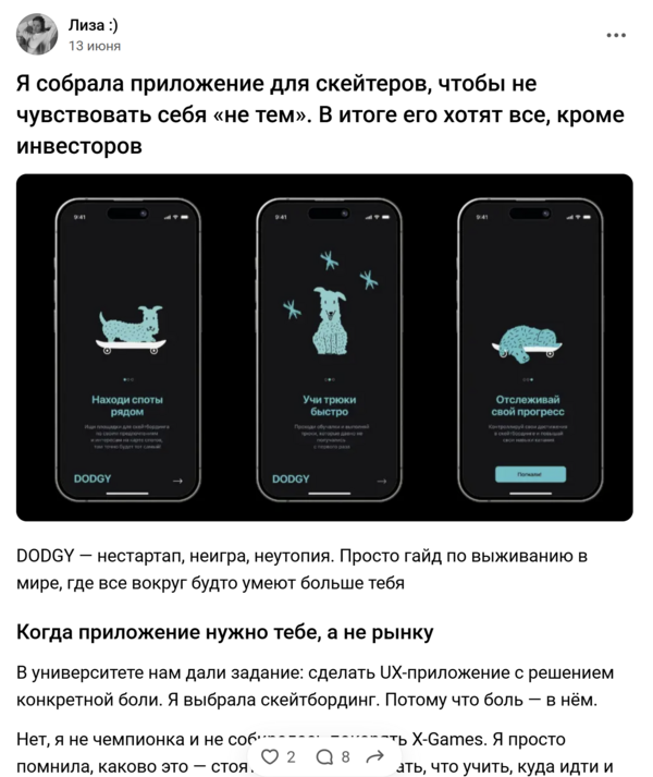 «Я собрала приложение для скейтеров, чтобы не чувствовать себя „не тем“. В итоге его хотят все, кроме инвесторов»