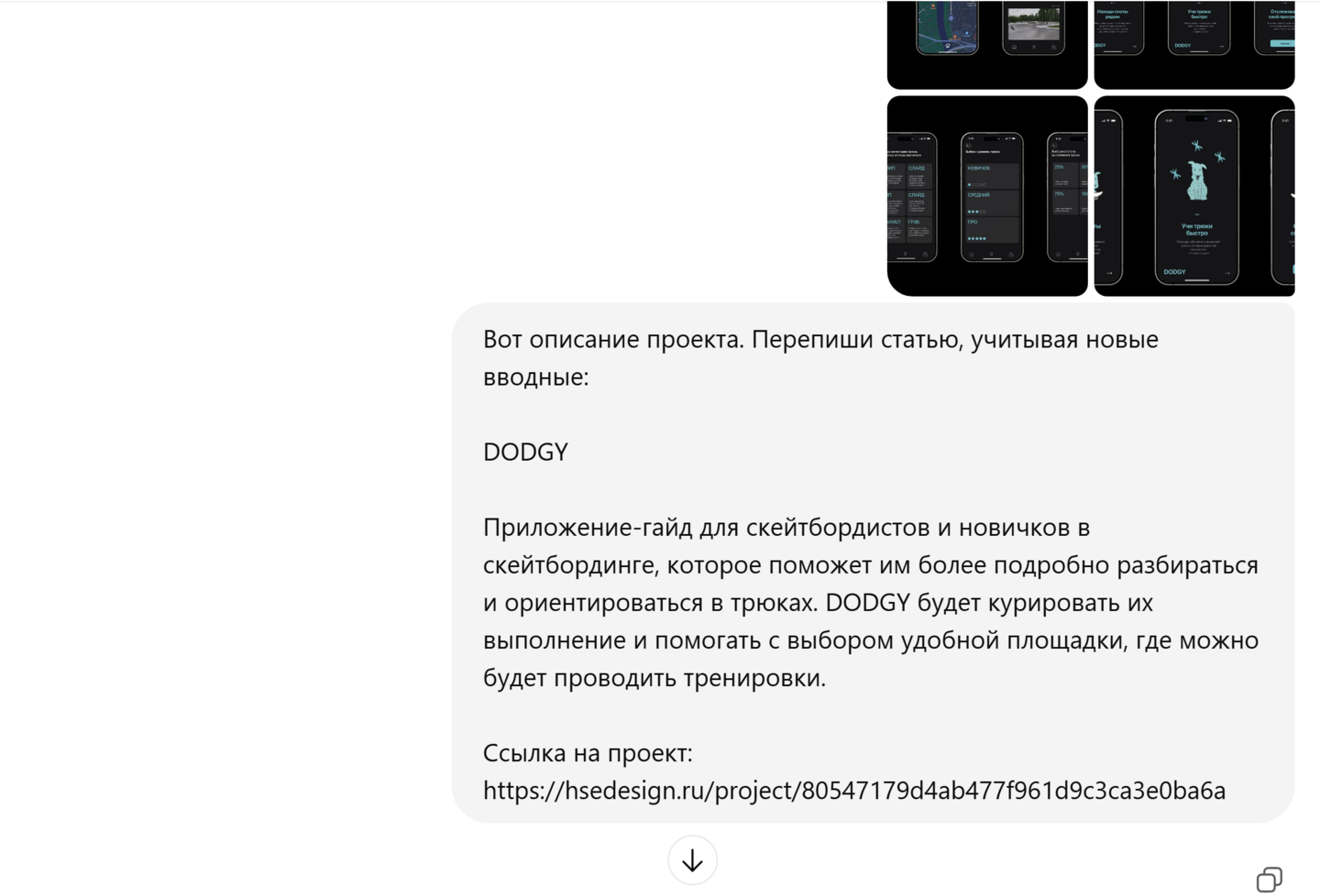 Для продвижения концептуального UX-проекта DODGY — приложения-гайда для новичков в скейтбординге — я осознанно выбрала формат экспериментального продвижения с помощью ИИ-инструментов. Моя цель заключалась не в коммерческом запуске, а в том, чтобы протестировать, насколько нейросети могут усилить идею и сделать её понятной, живой и виральной.