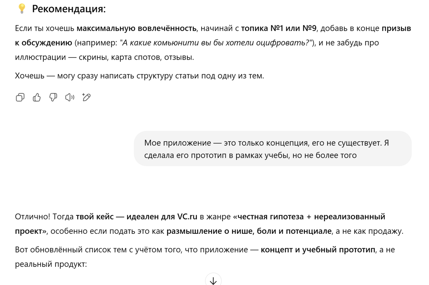 Продвижение проекта DODGY через VC.ru показало высокую вовлечённость и оправдало гипотезу, что тема цифровой помощи новичкам в нишевых сообществах вызывает отклик. ИИ-инструменты были эффективно использованы для: