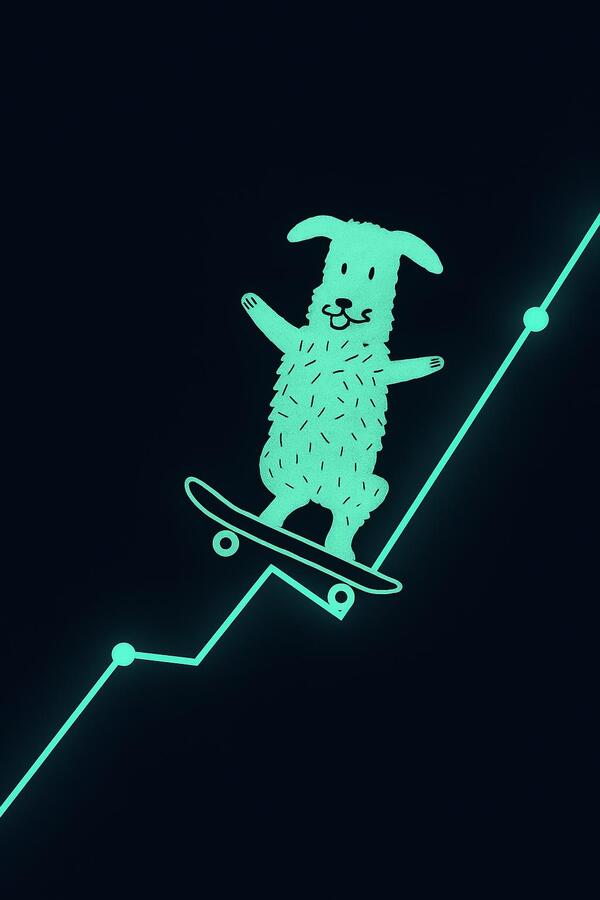 - Я сгенерировала обложку проекта с заголовком, в стилистике приложения; - Создала иллюстрацию, в которой фирменный персонаж — собака на скейтборде — едет по графику вовлечённости, визуализируя рост охвата; - Использовала ИИ-рендер для mockup’ов и интерфейсных карточек, чтобы сделать подачу цельной.