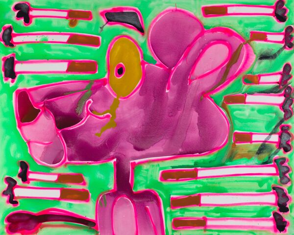 Кэтрин Бернхардт сочетает поп-культуру и классическую живопись в своём «грубом» стиле, который на первый взгляд кажется случайным. Однако за кажущейся игрой скрывается тонкая критика и искреннее отношение к современным реалиям