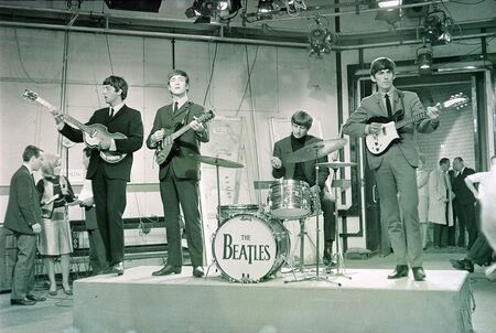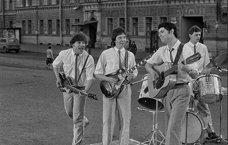 Слева — легендарная группа «The Beatles», фотография сделана в 1960-х Слева — рок-группа Секрет, фотография сделана в 1980-х