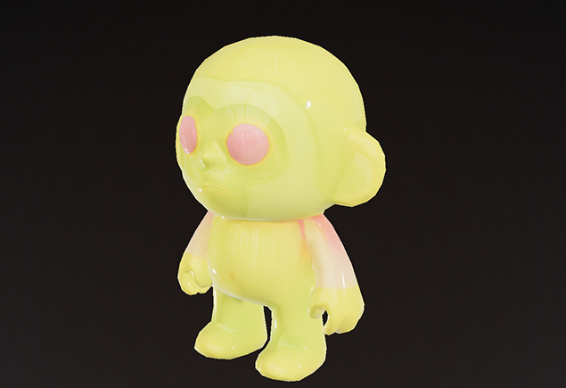 A single fantasy toy figure, 3D render. A strange but cute designer art toy made of semi-transparent plastic with a glossy finish. Soft inner shapes and subtle colors visible inside the material. Slightly oversized head, simple face with large round eyes and a small mouth, naive and slightly unsettling expression. Simplified rounded body, short cylindrical arms and legs. Minimalist sculpt, smooth surfaces, muted beige. Collectible art toy style, handmade feel. Neutral light background, studio lighting, soft shadows. Realistic plastic material, subsurface scattering, high detail, clean silhouette, centered composition.